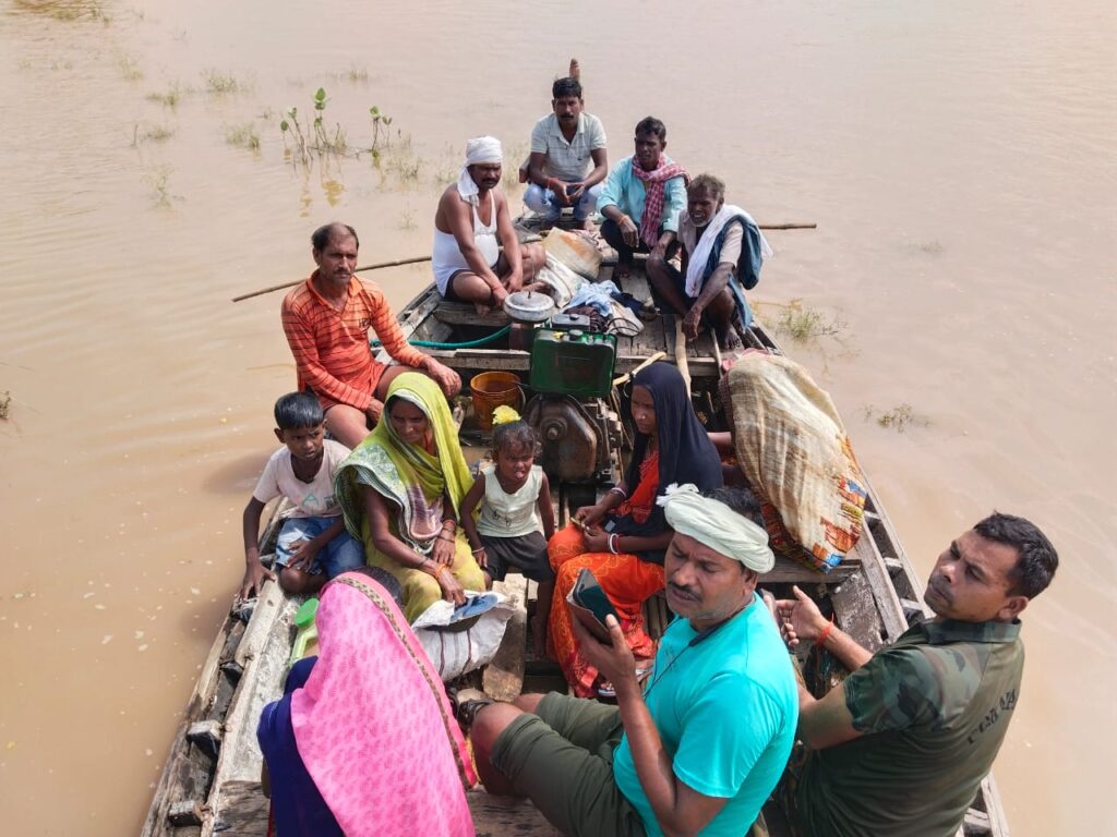 हुसैनाबाद सोन नदी में फंसे लोगों का रेस्क्यू जारी।