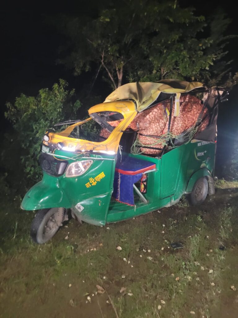 ट्रक ने टेम्पु, मोटरसाइकिल को मारी टक्कर, ट्रक पलटा |