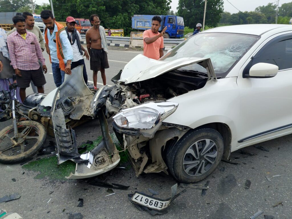 कार की टक्कर बाइक सवार गंभीर रूप से हुआ घायल |