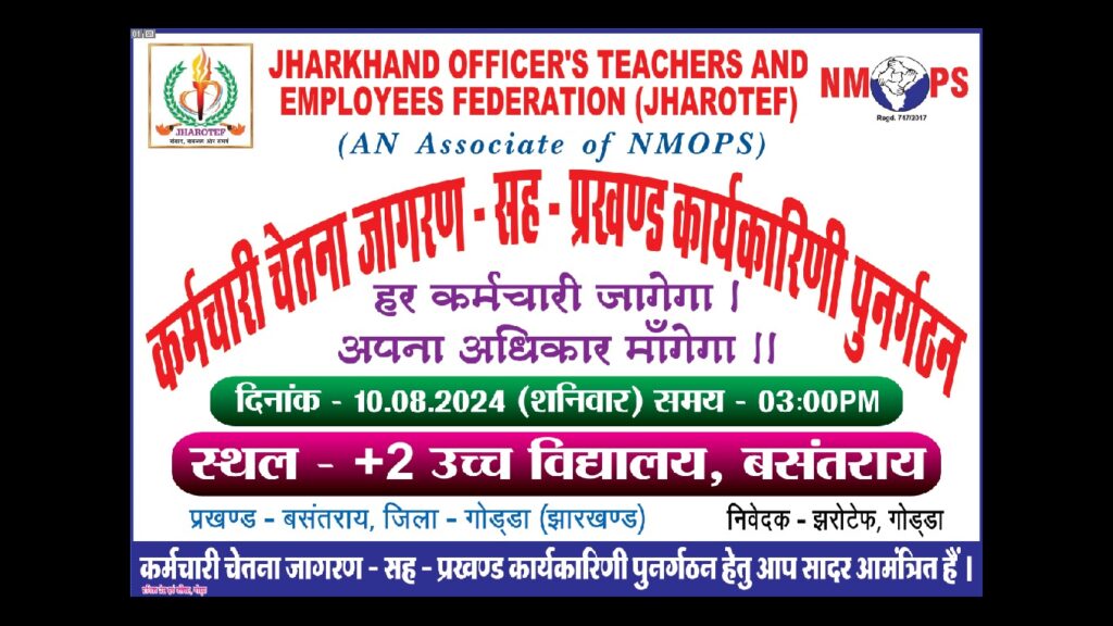 झारखंड ऑफिसर्स टीचर्स एंड एम्प्लॉई फेडरेशन (झारोटेफ) के गोड्डा जिला इकाई द्वारा द्वितीय चरण में गोड्डा अनुमंडल के पांचों प्रखंडों