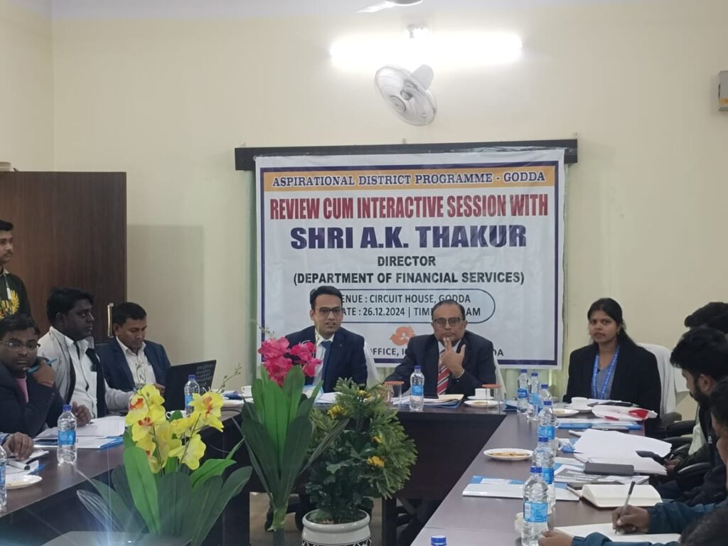 गोड्डा के सर्किट हाउस में वित्त सेवा विभाग के निदेशक ए. के ठाकुर की अध्यक्षता में आकांक्षी समीक्षा बैठक हुई |