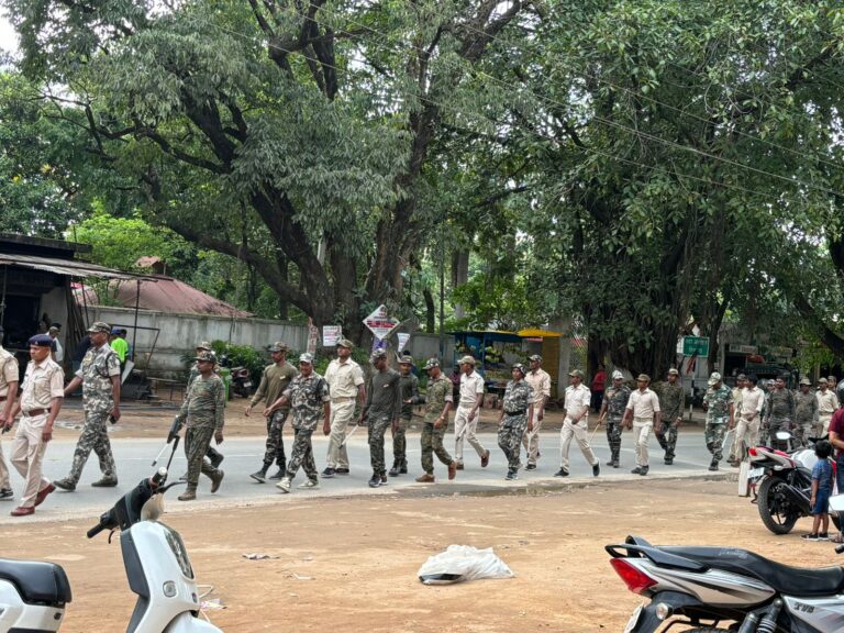 सिमडेगा:- मुहर्रम के दौरान सुरक्षा व्यवस्था और शांति व्यस्था बनाए रखने के लिए सिमडेगा पुलिस मुस्तैद है। पुलिस ने मंगलवार को फ्लैग मार्च निकाल कर शांतिपूर्ण माहौल में त्योहार मनाने का संदेश दिया। मुहर्रम त्योहार के मद्देनजर एसडीओ सुमंत तिर्की, डीएसपी हेड क्वार्टर अवधेश यादव, सदर सीओ इम्तियाज अहमद और सदर थाना प्रभारी इंस्पेक्टर विनोद कुमार के नेतृत्व में पुलिस बल ने पुरे शहरी क्षेत्र में फ्लैग मार्च किया।इस दौरान पुलिस संवेदनशील जगहों पर विशेष निगरानी रखते हुए वहां की गतिविधियों का मुआयना किया। बताया गया कि मुहर्रम त्योहार दौरान जगह जगह पुलिस बल तैनात रहेगी। साथ हीं पुलिस की आईटी सेल भी त्योहार के दौरान एक्टिव रहेगी।एसपी सौरभ ने कहा कि त्योहार सौहार्दपूर्ण वातावरण में शांति के साथ मनाए। उन्होने कहा कि त्योहार के दौरान पुरे जिले के हरेक थाना क्षेत्र में पुलिस मुस्तैदी के साथ क्षेत्र में निगरानी रखेगी। उन्होने कहा कि त्योहार के दौरान सोशल मीडिया या अन्य माध्यमों से अफवाह फैलाने वालों पर पुलिस की विशेष निगरानी होगी। अफवाह फैलाने वालों को किसी कीमत पर बख्शा नहीं जाएगा।