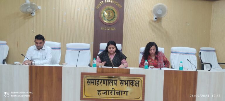 हजारीबाग:– उपायुक्त श्रीमती नैंसी सहाय की अध्यक्षता में गुरुवार को मनरेगा योजना, प्रधानमंत्री आवास योजना एवं राज्य सरकार के द्वार संचालित कल्याणकारी योजनाओं की समीक्षात्मक बैठक की गई। समाहरणालय के सभाकक्ष में आयोजित इस बैठक में उपायुक्त श्रीमती नैंसी सहाय एवं डीडीसी श्रीमती प्रेरणा दीक्षित ने संयुक्त रूप से प्रधानमंत्री आवास योजना, अम्बेडकर आवास योजना, अबुआ आवास योजना, मनरेगा अंतर्गत बिरसा कूप संवर्धन योजना, डोभा, आंगनबाड़ी योजना की प्रगति, बिरसा हरित ग्राम योजना, बागवानी योजना, वीर शहिद पोटो हो खेल विकास योजना, पीड़ी जेनरेसन, जिओ टैगिंग, जनमन योजना, पंचायती राज, एबीपीएस की स्तिथि, जेएसएलपीएस के तहत संचालित योजनाओं की प्रगति की समीक्षा की।बैठक में उपायुक्त ने मनरेगा के अंतर्गत संचालित योजनाओं की प्रगति में कम प्रदर्शन करने वाले प्रखण्डो पर नाराज़गी जाहिर की। उन्होंने कमतर प्रदर्शन करने वाले प्रखंडों के बीडीओ को कार्य की प्रगति में सुधार करने और क्रियान्वित योजनाओं को ससमय पूर्ण करने का का निर्देश दिया।