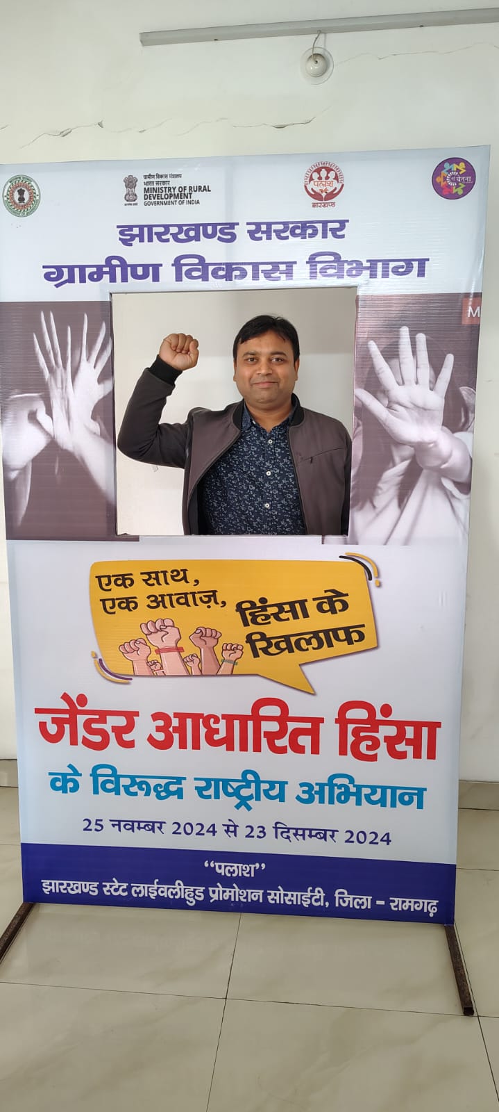 रामगढ़। ग्रामीण विकास विभाग भारत सरकार के द्वारा नई चेतना 3.0 लैंगिक हिंसा के विरुद्ध जेंडर अभियान दिनांक 25 नवंबर 2024 से 23 दिसंबर 2024 तक किया जा रहा है, इस अभियान के अंतर्गत विभिन्न जागरूकता का संचालन किया जाएगा जिसमे सभी संस्थाओं को लैंगिक समानता के प्रति संवेदनशील किया जाएगा। जेएसएलपीएस रामगढ़ के जिला कार्यक्रम प्रबंधक रीता सिंह के द्वारा बताया गया की इस अभियान के अंतर्गत सभी प्रखंडों में स्वयं सहायता समूह के सहयोग से विभिन्न जागरूकता कार्यक्रम का आयोजन किया जाएगा जिसमें जेंडर शपथ, रैली, कैंडल मार्च, लैंगिक असमानता के प्रति चौपाल का अयोजन, जेंडर रिसोर्स सेंटर के सलाहकार समिति का बैठक, खेलकूद के माध्यम से जागरूकता करना, रंगोली कार्यक्रम एवं अन्य कार्यक्रम का आयोजन किया जाएगा। इसी कार्यक्रम के तहत आज जेएसएलपीएस के जिला कार्यालय में लैंगिक हिंसा के विरुद्ध हस्ताक्षर अभियान, सेल्फी एवं जेंडर शपथ कार्यक्रम का आयोजन किया गया जिसमें सभी पदाधिकारी एवं कर्मियों ने भाग लिया।