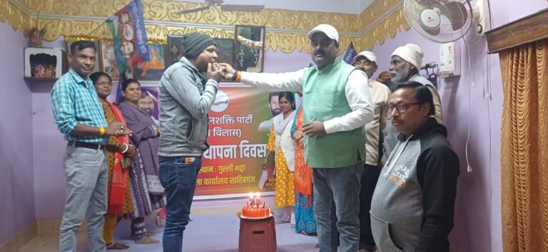 लोक जनशक्ति पार्टी के 25 वा स्थापना दिवस साहिबगंज में जिला अध्यक्ष द्वारा केक काटकर का मनाया गया