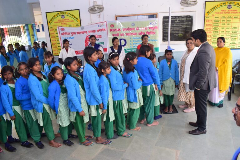 पाकुड़ : राष्ट्रीय बाल स्वास्थ्य कार्यक्रम के तहत आज कस्तूरबा गांधी आवासीय बालिका विद्यालय में चल रहे स्वास्थ्य शिविर का उपायुक्त मनीष कुमार ने जायजा लिया। मेडिकल टीम ने विद्यालय के बच्चों का स्वास्थ्य जांच के उपरांत उन्हें खान-पान समेत कई आवश्यक सलाह दी। साथ हीं बच्चों को नि:शुल्क दवा भी दिया। दिनांक 16 दिसंबर को उपायुक्त मनीष कुमार के द्वारा राष्ट्रीय बाल स्वास्थ्य कार्यक्रम का शुभारम्भ किया गया था। इसी क्रम में दिनांक 16 दिसंबर से 19 दिसंबर तक कुल 2726 बच्चों का स्वास्थ्य जांच किया गया जिसमें दांत की समस्या -117, आँख की समस्या- 45, कान की समस्या-9, स्कीन की समस्या-39 एवं अन्य समस्या-146, कुल रेफर बच्चों की संख्या-199।