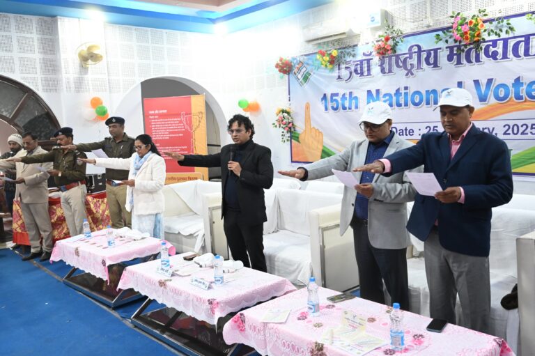 साहिबगंज(उजाला)।सिद्धू कान्हू सभागार में 15वां राष्ट्रीय मतदाता दिवस बड़े धूमधाम और गरिमा के साथ मनाया गया। इस कार्यक्रम की शुरुआत दीप प्रज्वलन के साथ हुई, जिसे उपायुक्त हेमंत सती, अपर समाहर्ता गौतम भगत, अनुमंडल पदाधिकारी अंगार नाथ स्वर्णकार, जिला आपूर्ति पदाधिकारी झुनू कुमार मिश्रा, उप निर्वाचन पदाधिकारी सुनीता किस्कू और अन्य गणमान्य पदाधिकारियों ने संयुक्त रूप से किया।उपायुक्त हेमंत सती ने इस मौके पर राष्ट्रीय मतदाता दिवस के महत्व और उद्देश्यों पर प्रकाश डाला। उन्होंने कहा कि यह दिवस लोकतंत्र को मजबूत करने और नागरिकों को अपने मताधिकार का उपयोग करने के प्रति जागरूक करने के लिए समर्पित है। उपायुक्त ने सभी उपस्थित नागरिकों को मतदाता शपथ दिलाई, जिसमें सभी ने निष्पक्ष और निर्भीक होकर अपने मताधिकार का प्रयोग करने का संकल्प लिया।